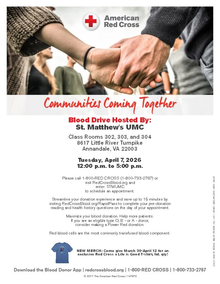 Red Cross Blood Drive April 7th St. Matthew's UMCJanuary 31, 2026 Facebook0 Twitter Pinterest0 0 Likes